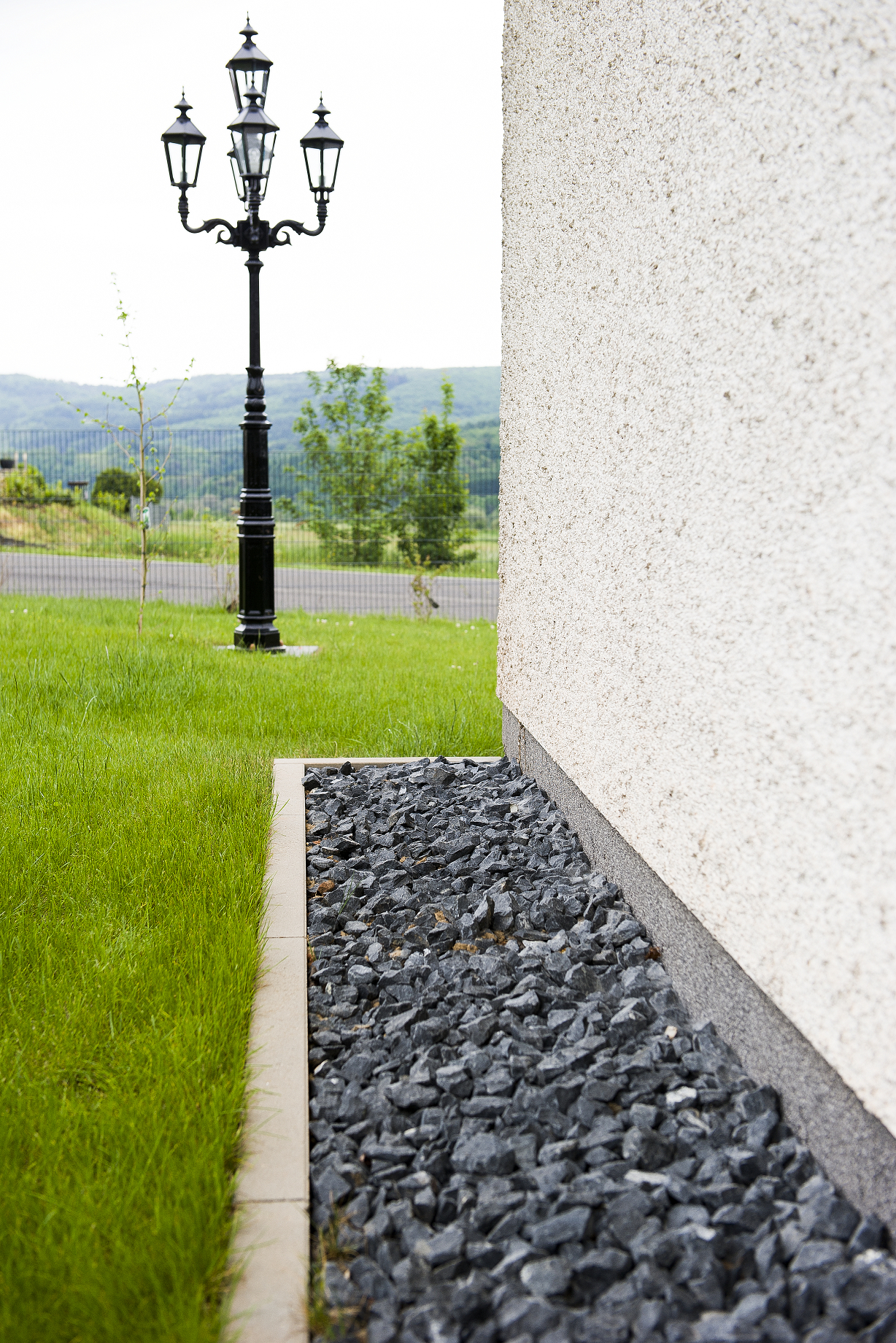 Pflasterung zum Hauseingang, Gartenzaun, Stein- und Blumenbeete, ...